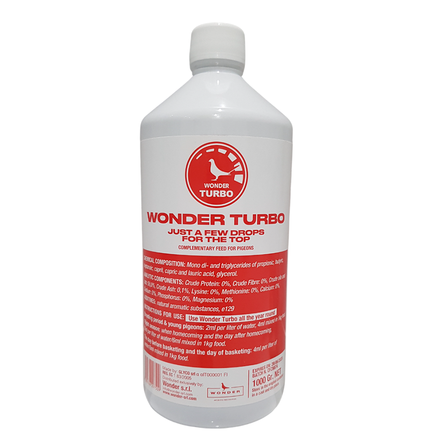“True improvement concerning natural health condition and recuperation and very easy to prepare pigeons to race 500–700 km weekly! I banned all oils and proteins and reduced the recup products with at least 50%. I truly believe this Wonder Turbo can fuel the pigeons a whole season long without additional energy products. Because the pigeons were in such a good shape all the time no trico nor cocci was observed at any time (including breeders and youngsters).